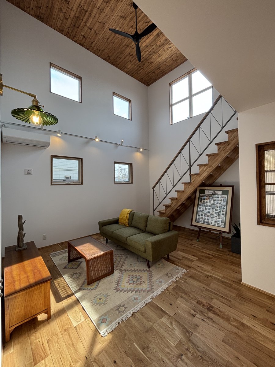 【幸町モデルハウス】Reanudar casa《常時見学可能》 工事前 基礎工事 建方工事 屋根工事 外壁工事 断熱工事 内部造作工事 仕上工事 完成・見学会 玄関 リビング➀ リビング② リビング③ キッチン 造作洗面 主寝室 ヌックスペース トイレ