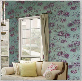 花柄をあしらった上品な色合いの 輸入クロスを一面アクセントとして チョイス 。ベース色をくすんだ ブルーグリーンでシックな空間に。