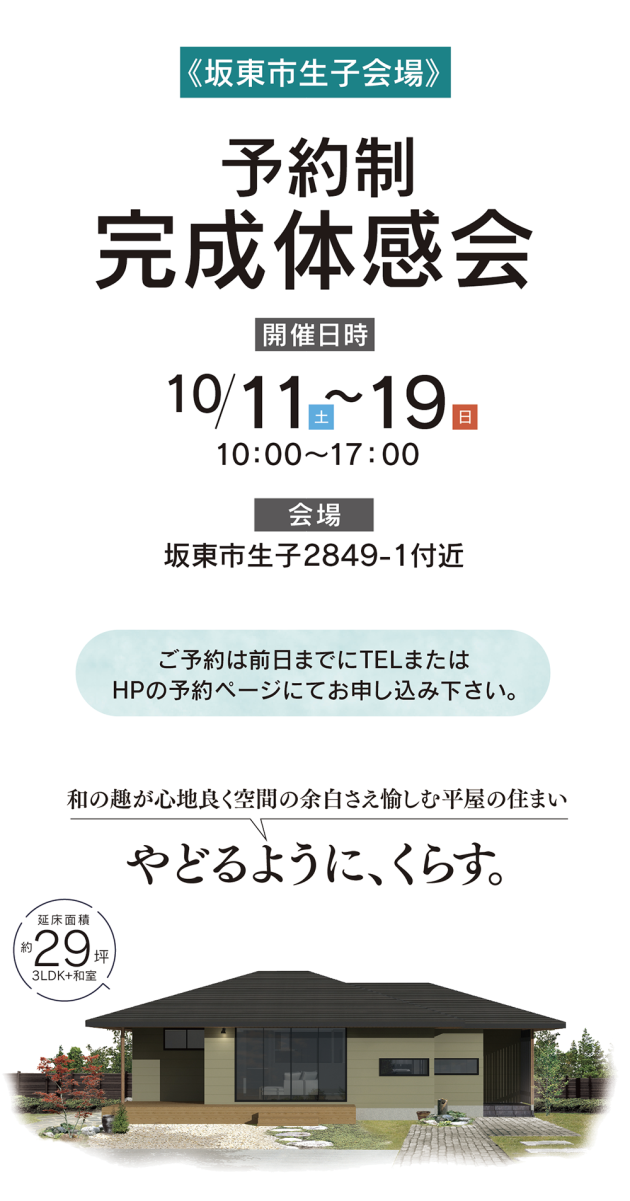 今回、坂東市生子で見学会(内覧会・オープンハウス)を開催。