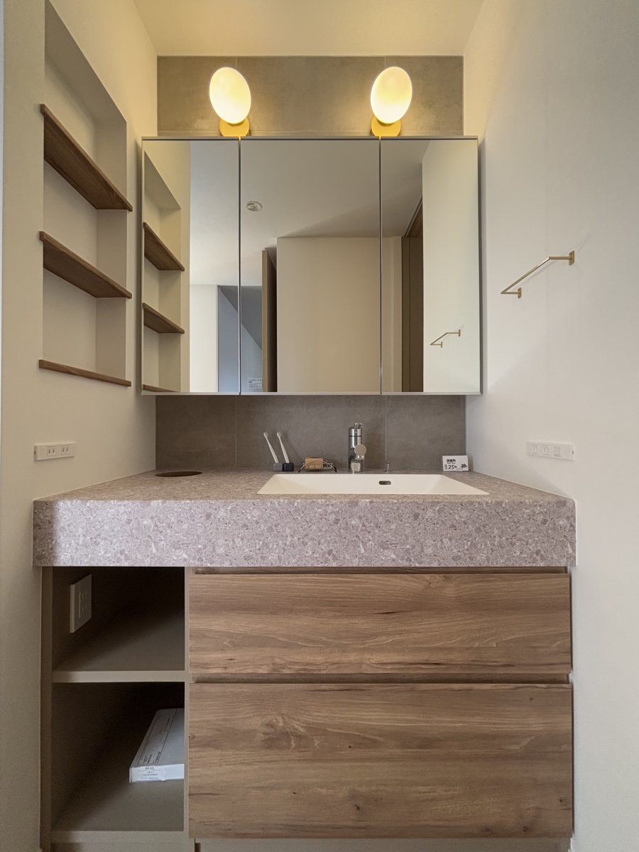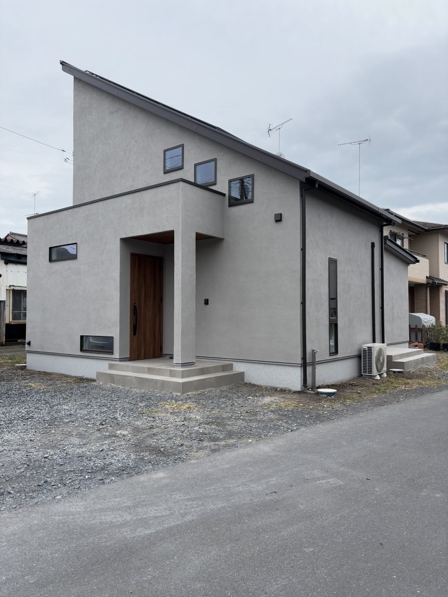 【筑西市】グレージュの恋と、オークと。《完成》 グレージュにオークと栗の木を合わせた やさしさに包まれたオウチ 工事前 基礎工事 建方工事 屋根工事 外壁工事 断熱工事 内部造作工事 仕上工事 完成・見学会 外観 玄関内部 リビング➀ リビング② ダイニング キッチン 洗面 脱衣室 トイレ 主寝室 中庭