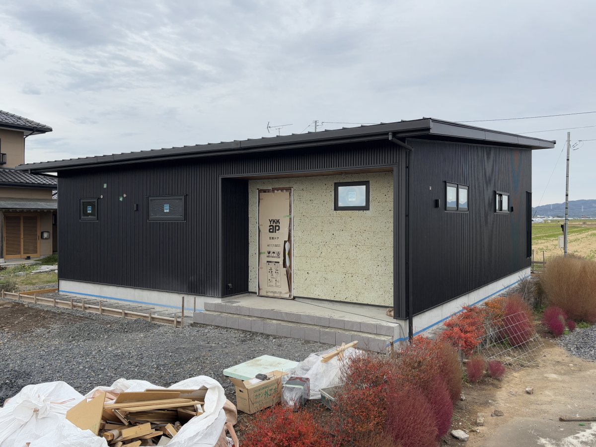 家づくりの現場公開中 【真岡市】Japanese Moden《完成》 クールなブラックに上品な大谷石を合わせた ちょっぴりスパイシーな住宅 工事前 基礎工事 建方工事 屋根工事 外壁工事 断熱工事 内部造作工事 仕上工事 完成・見学会 玄関 玄関内部 ホール リビング➀ リビング② キッチン 和室 洗面室 脱衣室&浴室 トイレ 寝室 ランドリースペース 家づくりの現場公開中に戻る