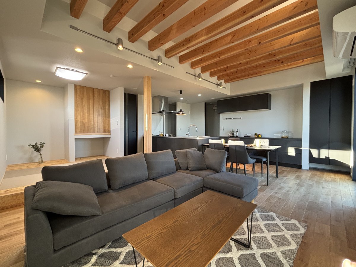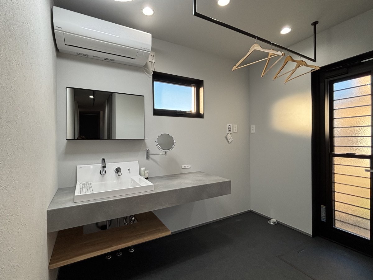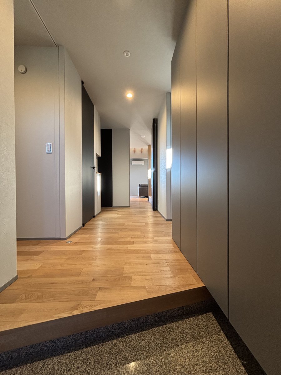 【真岡市】Japanese Moden《完成》 クールなブラックに上品な大谷石を合わせた ちょっぴりスパイシーな住宅 工事前 基礎工事 建方工事 屋根工事 外壁工事 断熱工事 内部造作工事 仕上工事 完成・見学会 玄関 玄関内部 ホール リビング➀ リビング② キッチン 和室 洗面室 脱衣室&浴室 トイレ 寝室 ランドリースペース